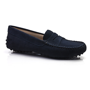 Navy Nubuck Flat Shoes, Navy trim, Leather sole