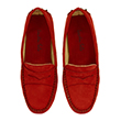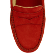 Red Nubuck Flat Shoes, Red trim, Leather sole