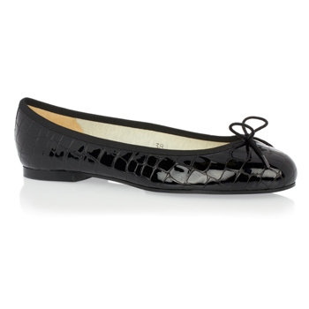 Black Patent Croc Ballet Flats, Black trim, Black Rubber sole