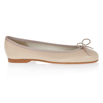 Nude Leather Flat Shoes - Ballet Flats, Nude trim, Camel Rubber sole