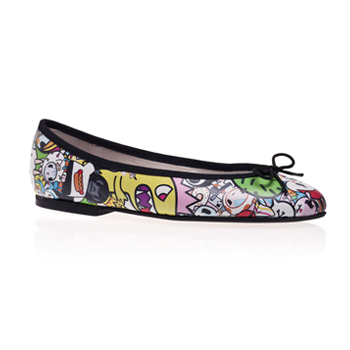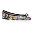 Multi-color Leather Ballet Flats, Black trim, Black Rubber sole