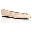 Suits a narrow to medium width fitting, has an elegant low vamp, revealing a little toe cleavage, and has a quarter inch heel. It is generous in length and is a well-balanced elegant ballet flat wardrobe essential.