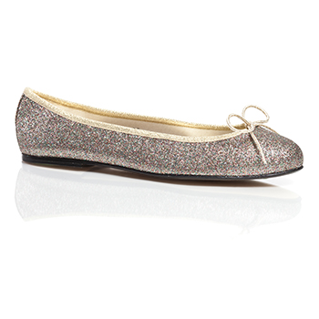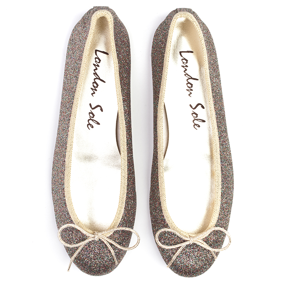 Multi Glitter Ballet Flats, Gold trim, Leather sole