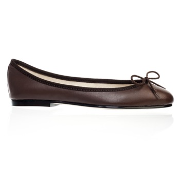 Brown Leather Ballet Flats, Brown trim, Elastomere sole