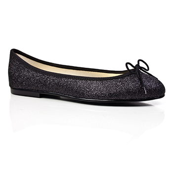 Black Glitter Ballet Flats, Black trim, Elastomere sole