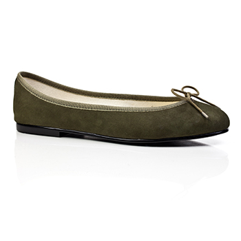 Olive Green Nubuck Ballet Flats, Olive Green trim, Elastomere sole