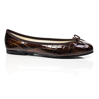 Chocolate Brown Croc Ballet Flats, Brown trim, Elastomere sole