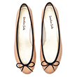 Beige Leather Ballet Flats, Black trim, Elastomere sole