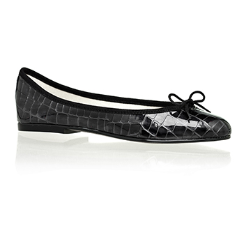 Grey Patent Croc Ballet Flats, Grey trim, Elastomere sole