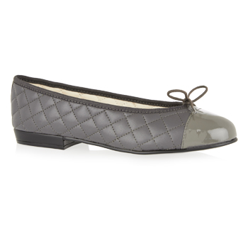 Grey Quilted Leather Ballerina Flats - Flat Shoes, Grey trim, Grey Patent toe-cap, Elastomere sole