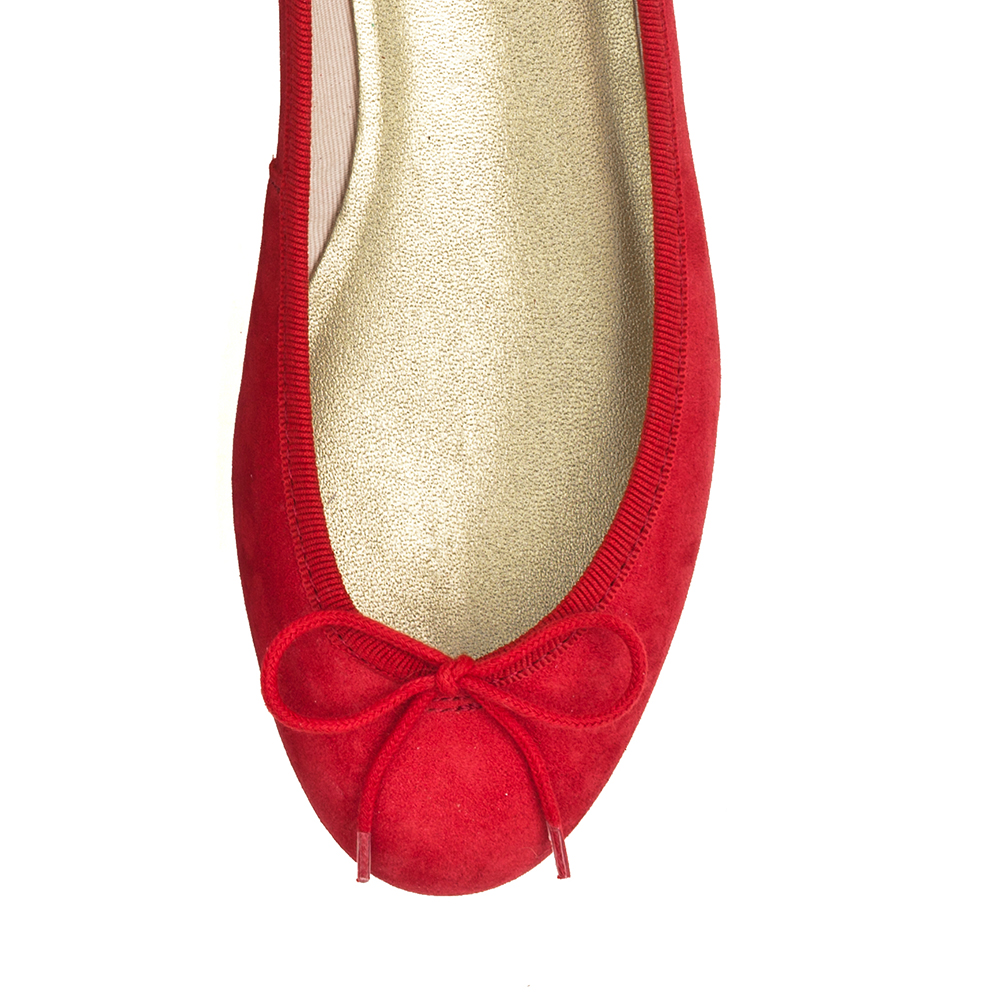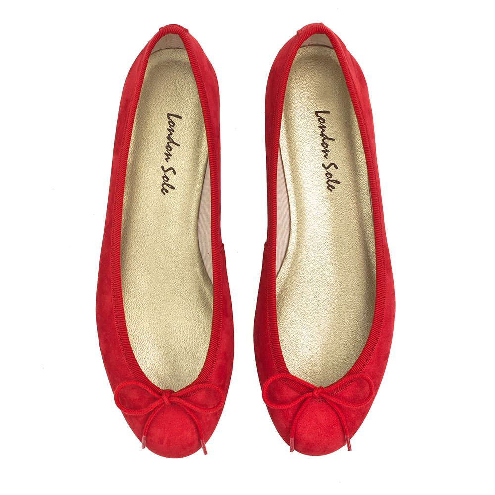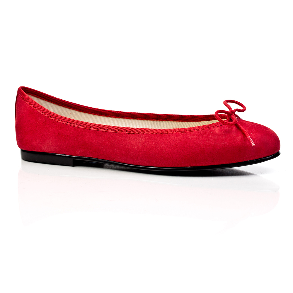 Red Nubuck Ballet Pumps - Flat Shoes, Red trim, Leather sole